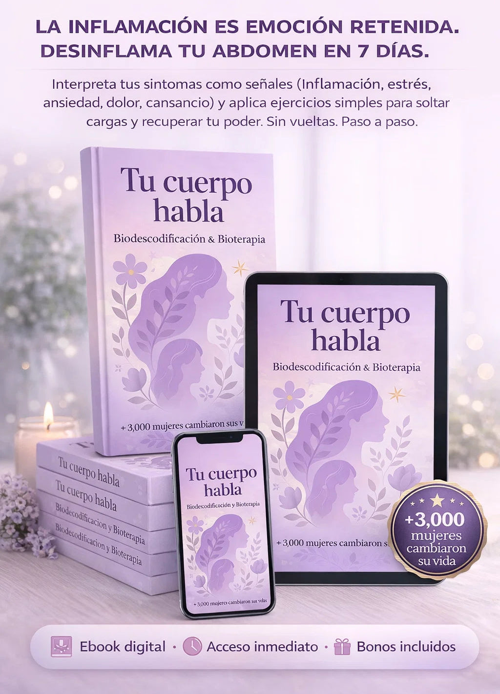 No. Es una guía práctica de introspección + ejercicios simples para escuchar tu cuerpo y ordenar lo que sentís.